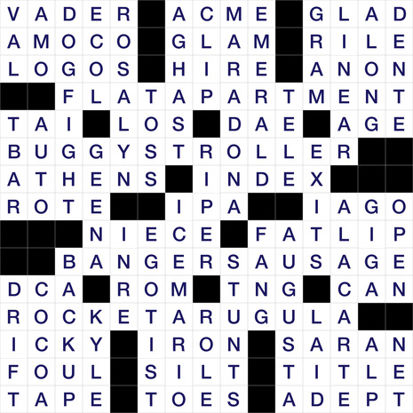 Five-star frank?is BANGERSAUSAGE. - Answer for